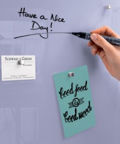 - Beschrijfbaar met glasbord-markeerstiften en alle in de handel gebruikelijke board- en krijtstiften en zowel droog als vochtig schoon te vegen