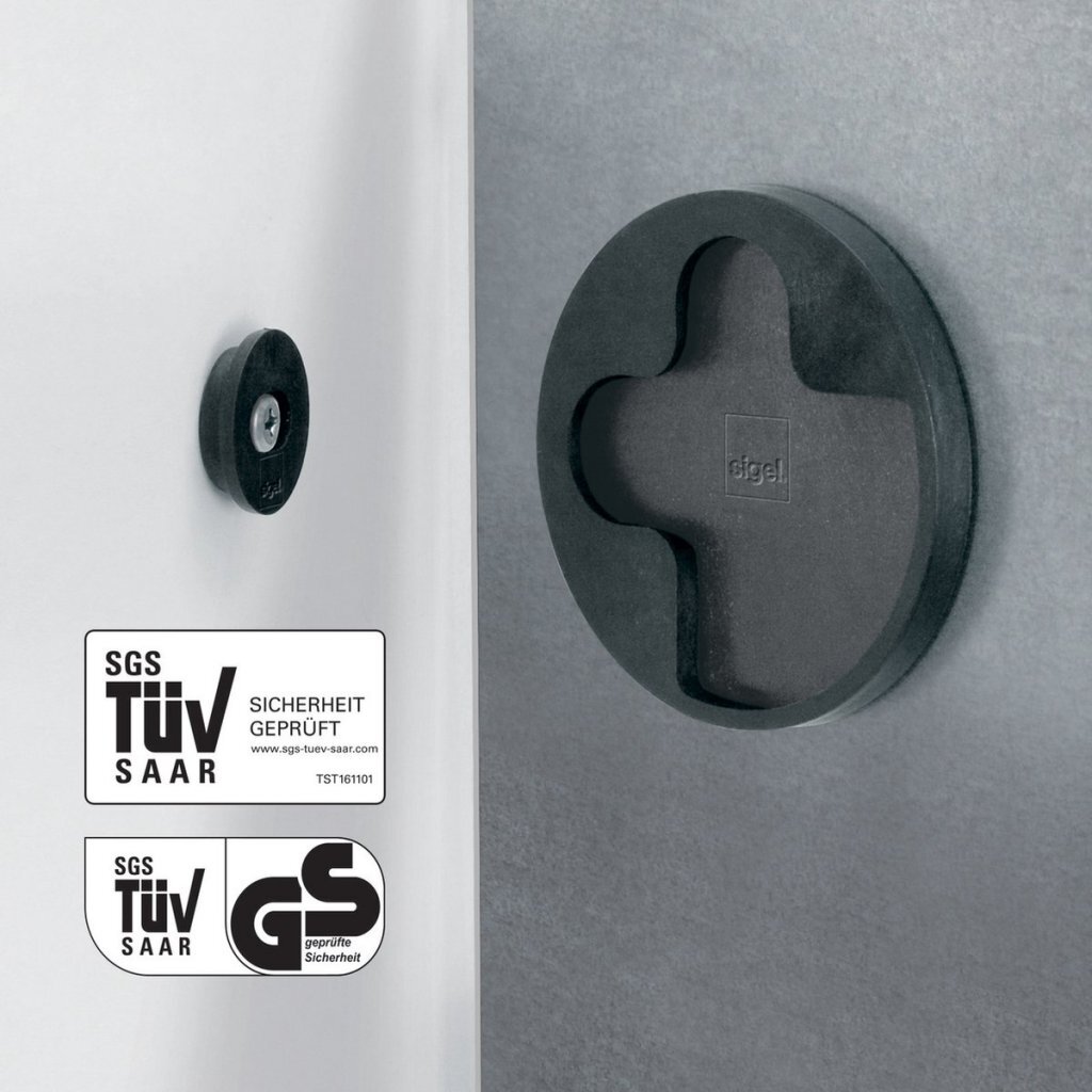 - Gegarandeerde productveiligheid: TÜV- en GS-geteste veiligheidsophanging met gleuf voor het bijstellen van kleine boorfouten en voor een vrijwel naadloze montage van meerdere magneetborden