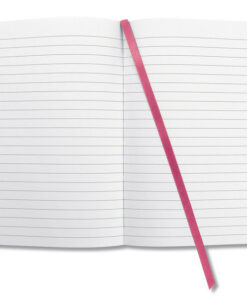 Notitieboek met wit gelinieerd papier, 80grs (zuurvrij, houtvrij en elementair chloorvrij). FSC gecertificeerd. 174 pagina’s waarvan 16 geperforeerd. Het notitieboekje is voorzien van penlus, elastieksluiting, leeslint en opbergvak. De cover is gemaakt van zacht kunststof met een 3D effect. Formaat A5: 135x203x16mm. Kleur Fuchsia roze.