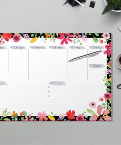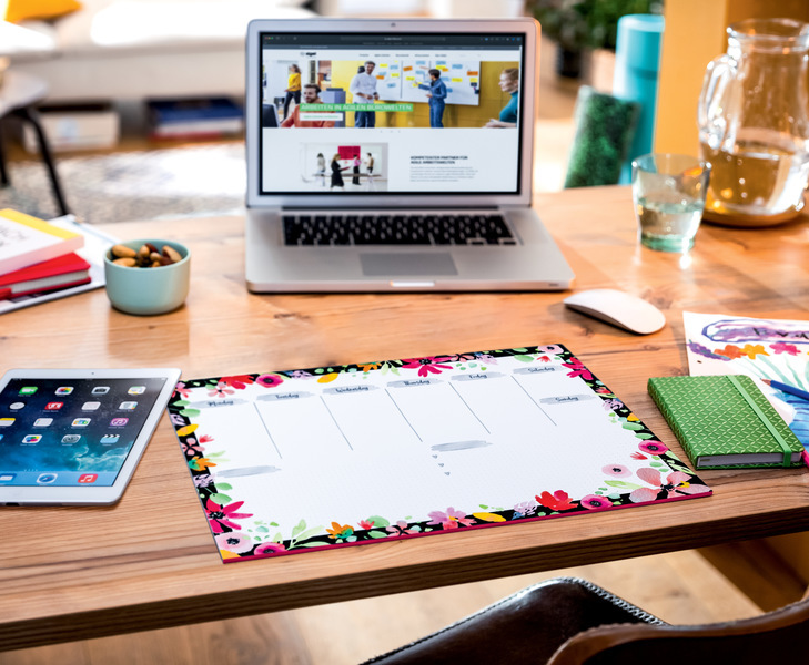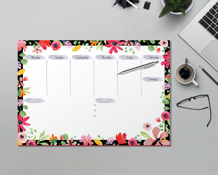 Papier-schrijfonderlegger Jolie, A3, Flower Love (EN), Lay-out in de Engelse taal, met ongedateerde weekplanner en veel plaats voor notities, to-do-lijsten etc., bont, 420×297 mm, 80 g, 30 vel