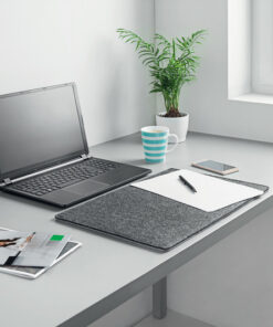 Schrijfonderlegger Casualstyle in individuele, stijlvolle businesslook, aantrekkelijke en bijzondere optiek door het populaire vilt materiaal. Met moderne, afgeronde hoeken en decente contrastnaad, voelt aangenaam, zacht en warm aan. Verschuift niet: dankzij anti-schuif-pads op de onderkant. Zeer stabiel: door de geïntegreerde kunststof kern en de twee lagen vilt ligt de schrijfonderlegger vlak op tafel. Kleur antraciet/grijs. Afmeting 500x330x7mm.