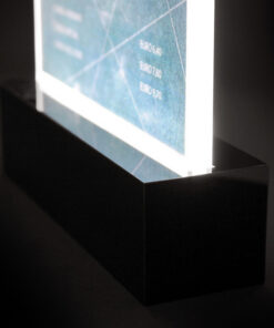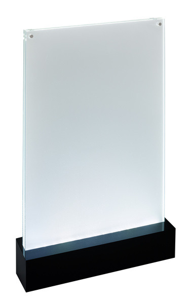 Tafelstandaard incl LED verlichting uitgevoerd in acryl. De LED-verlichting is geïntegreerd in de panelen en geeft hedendaags wit licht (vergelijkbaar met daglicht 8500 K). De inserts zijn eenvoudig te verwisselen. De standaard zijn voorzien van een aan/uit schakelaar. De brandtijd is circa 250 uur en het werkt op 2 of 4 (A4) 1.5V batterijen (deze worden niet meegeleverd). Formaat A4. Garantie; 25 jaar op de UV-bestendigheid van het acryl-www.sigel.de/garantie