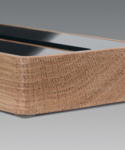 Hoogwaardige en moderne visitekaarthouder van massief eikenhout. Perfect voor de stijlvolle presentatie van uw eigen visitekaartjes op uw werkplek of bij de receptie. Stijlvolle combinatie van natuurlijk echt hout en zwart acryl aan de bovenkant. Met een vak voor maximaal 30 visitekaartjes (max. 90 x 60 mm). Rubberen voetjes aan de onderkant voorkomen uitglijden van de visitekaarthouder bij het verwijderen van de visitekaartjes. Afmeting: 107x63x22 mm.