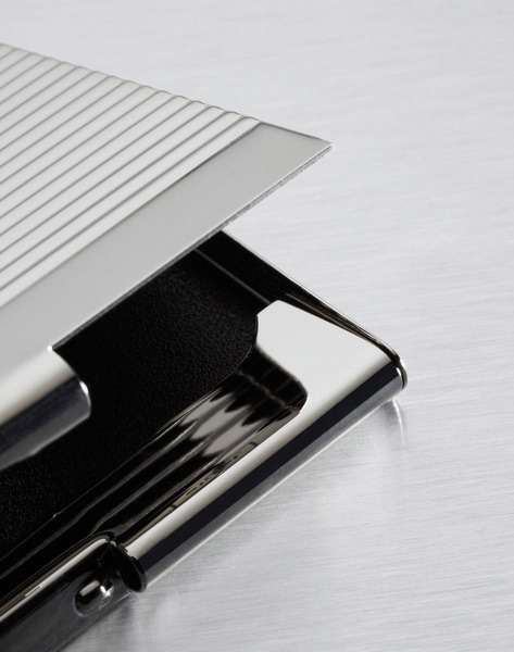 Etui voor visitekaartjes. Zilver. Chroom. Voor max. 20 kaartjes (max. 91×56 mm).