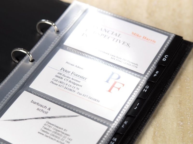 Showtassen voor visitekaartringband. Één rij. Doorzichtig. 10 hoesjes. Kunststof. Voor max. 80 kaartjes (max. 90×58 mm).