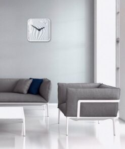 Kwalitatief hoogwaardige wandklok in modern app formaat. Hoogwaardige glanzende voorkant van mineraalglas in combinatie met een ABS-kunststof kast in hoogglans. Opvallende wijzerplaat met bijzonder, visueel effect in wit en grijs. Brede, kegelvormig toelopende wijzers in donkergrijs. Geruisloos uurwerk en geluidloze wijzers. Afmeting 350 x 350 x 45mm. Kleur wit. Loopt op 1 x 1,5V AA batterij (niet meegeleverd). Garantie; 5 jaar-www.sigel.de/garantie