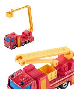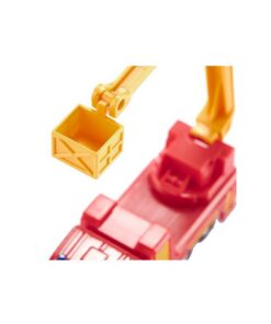 Redding op grote hoogte! Brand op de vierde verdieping. Via het trappenhuis is geen redding mogelijk. Dan is de brandweer met een ladderwagen op de locatie. Net als bij het grote voorbeeld is de mast draaibaar, de reddingsmand kan kantelen en het reddingsplateau kan worden uitgeklapt. De siku brandweer ladderwagen komt op een 3-assig chassis met een metalen cabine naar de locatie.