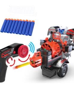 1. Blaster Schietspel: Verander je controller in een blaster! Bevestig de dartshouder op de controller en bevestig een doelwit op de robot. Schiet met je controller tot 10 darts met opmerkelijke precisie op het doelwit. De dartshouder roteert vanzelf om steeds een nieuwe dart te kunnen afschieten. Weet jij het doelwit te raken? 2. Robot Schietspel: Bevestig de dartshouder op de robot. Jij hebt nu volledige controle over de bewegingen van de robot met de controller. Navigeer in alle richtingen – vooruit, achteruit en draaien – terwijl je darts afvuurt op doelwitten met één eenvoudige druk op de knop!De darts zijn gemaakt van veilig en zacht materiaal, totaal 20 stuks meegeleverd. Zowel robot als controller zijn uitgerust met oplaadbare batterijen! Bereid je voor om jezelf onder te dompelen in de ultieme mix van technologie en entertainment. Inclusief 2 doelwitten. Frequentie: 2.4 Ghz. Geschikt voor kinderen vanaf 5 jaar.