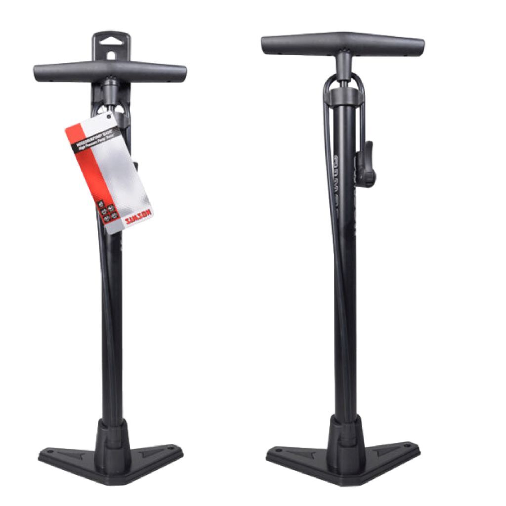 De Simson hogedrukpomp Basic is een robuuste zwarte fietspomp met een pompbereik van 8 bar/116 PSI. De pomp heeft een stalen pompbuis en een stalen pompvoet met fraaie kunststofafwerking. Het ergonomische kunststof handvat zorgt voor een comfortabele greep bij het pompen. De fietspomp is voorzien van een dubbele pompkop waarmee alle soorten fietsventielen zonder hulp van verloopstukken eenvoudig kunnen worden opgepompt.