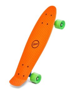 Dit felgekleurde skateboard heeft een stevig plastic deck en een stijlvol retro fishboard design dat perfect is voor jonge skaters. Met een formaat van ongeveer 56 cm is dit skateboard ideaal voor kinderen, met een ontwerp dat perfect past bij kindervoeten. Beschikbaar in verschillende levendige kleuren – de kleur wordt willekeurig gekozen voor een leuke verrassing! Laat je kinderen de straten veroveren met dit vrolijke skateboard!