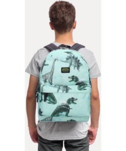 Deze rugzak in de kleur mint/zwart komt uit de Dino Explorer collectie en is voorzien van een stoere dino print. De rugzak heeft een groot hoofdvak en kleiner voorvak. Zo kunnen alle school- of logeerspullen eenvoudig worden opgeborgen. Door middel van de ritsen sluit je de tas eenvoudig en veilig. Met de verstelbare schouderbanden maak je de tas passend voor ieder kind.