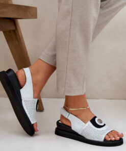 Sandalen van het merk Jezzi. Gemaakt van imitatieleer, een elegante optie voor warme dagen. Geplaatst op een sleehak, bieden ze comfort en stabiliteit. Met klittenbandsluiting voor gemakkelijke aanpassing aan de voet. Aan de voorkant bevindt zich een klein decoratief detail dat ze een subtiele charme geeft en hun elegante karakter benadrukt. Deze sandalen zijn een uitstekende keuze voor zomerse outfits, waarbij comfort en een modieuze uitstraling worden gecombineerd.