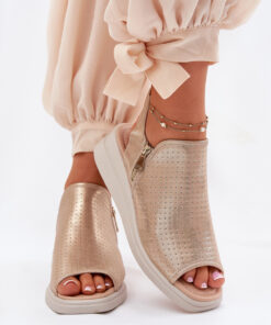 Dames sandalen van het merk Jezzi, gemaakt van eco-leer, zijn een elegante en comfortabele optie voor warme dagen. Met een sleehak zorgen ze voor stabiliteit en comfort gedurende de hele dag. Dit model heeft een korte rits aan de zijkant van de schacht, wat het aan- en uittrekken van de schoenen vergemakkelijkt. Deze stijlvolle sandalen passen perfect bij zomerjurken, rokken en broeken.
