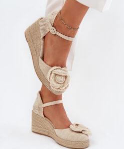 Dames sandalen gemaakt van textielmateriaal, op een sleehak met vlechtwerk, zijn een stijlvolle en comfortabele optie voor zomerse dagen. Bedekte neuzen voegen elegantie toe, en de gehaakte bloem aan de voorkant trekt de aandacht en geeft ze een bijzondere charme. Gesloten met een gesp met verstelbare band zorgen ze voor een perfecte pasvorm. Ideaal voor zomerse outfits, combineren ze comfort met een modieuze uitstraling.