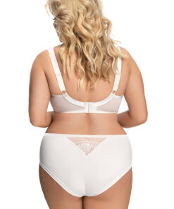 Volle, elegante slips die u zowel een mooie, vrouwelijke uitstraling als volledig comfort bieden. De voorkant is gemaakt van een combinatie van fijne tule, stretchbreisel en ongelooflijk mooi bloemenkant, dat in de vorm van een versiering de voorkant van het ondergoed versiert. Rug met kanten inzet bovenaan.