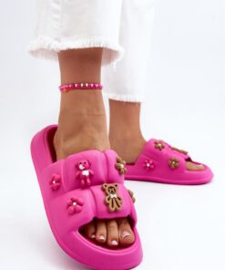 Schattige damespantoffels met een brede band. Gemaakt van schuimachtig materiaal. Dit model heeft opvallende decoraties aan de voorkant. Perfect voor wandelingen op het strand of luie middagen op het terras. Je moet ze absoluut hebben!