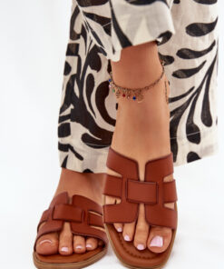 Dames slippers van imitatieleer, op een platte hak, hebben een eenvoudige maar elegante uitstraling. Perfect voor dagelijkse styling, combineren ze comfort met subtiele stijl, passend bij jurken, rokken of broeken, en voegen een vleugje klasse toe aan elke outfit.