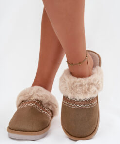 Sloffen van zachte stof zijn een gezellig model dat is gemaakt met het oog op dagelijks comfort. Het delicate bont en het decoratieve borduurwerk geven ze charme, waardoor een warme, huiselijke sfeer ontstaat. De binnenzool is bijzonder zacht, waardoor elke stap comfortabel en aangenaam wordt. Ideaal voor koelere dagen, ze bieden warmte en volledige ontspanning.