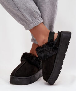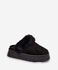 Dames pantoffels van ecologisch suède zijn een comfortabel en stijlvol voorstel voor koude dagen. Met een platform zorgen ze voor comfort en lichtheid, en hun binnenkant gevoerd met bont garandeert warmte en gezelligheid. Het model met een open hiel is uitgerust met een elastisch bandje, wat het gemakkelijker maakt om aan te passen en zorgt ervoor dat de pantoffels gemakkelijk aan te trekken zijn. Ideaal om binnenshuis en buitenshuis te dragen.