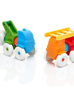 De extra grote, zachte onderdelen van de voertuigen klikken eenvoudig op de staven. Maak 4 verschillende voertuigen of combineer naar keuze om de gekste creaties te maken! Geschikt voor kinderen vanaf 1 jaar.