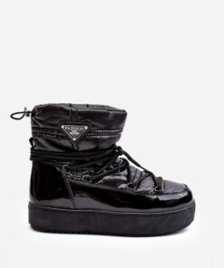 Damessneeuwlaarzen met enkellange bovenkant. Gemaakt van een combinatie van textiel en eco leer. Gezet op een dikke plateau, die perfect isoleert tegen de koude ondergrond. Slip-on model met glanzende veters. Geïsoleerd met bont. Ideaal voor koude dagen! Je moet ze zeker aanschaffen!