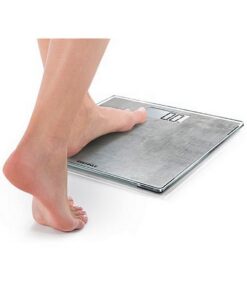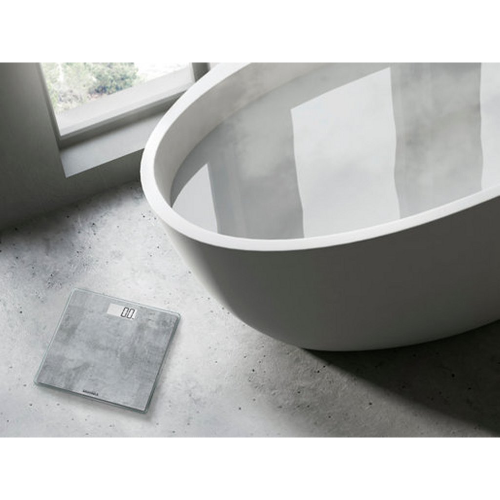 Met zijn stijlvolle betonlook is een blikvanger in elke badkamer. Hoogwaardig veiligheidsglas biedt een comfortabele standaard en kan tot 180 kg dragen.Zodra u op het weegoppervlak stapt, wordt de weegschaal ingeschakeld en wordt uw persoonlijke lichaamsgewicht in stappen van 100 g weergegeven op het gemakkelijk af te lezen LCD-scherm.Na het wegen schakelt hij automatisch uit – dit bespaart energie en maakt het mogelijk de meegeleverde batterijen lang te gebruiken.Het batterijvak is stevig vastgeschroefd en zorgt zo voor de veiligheid van de kleintjes.