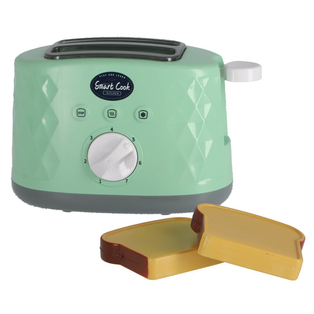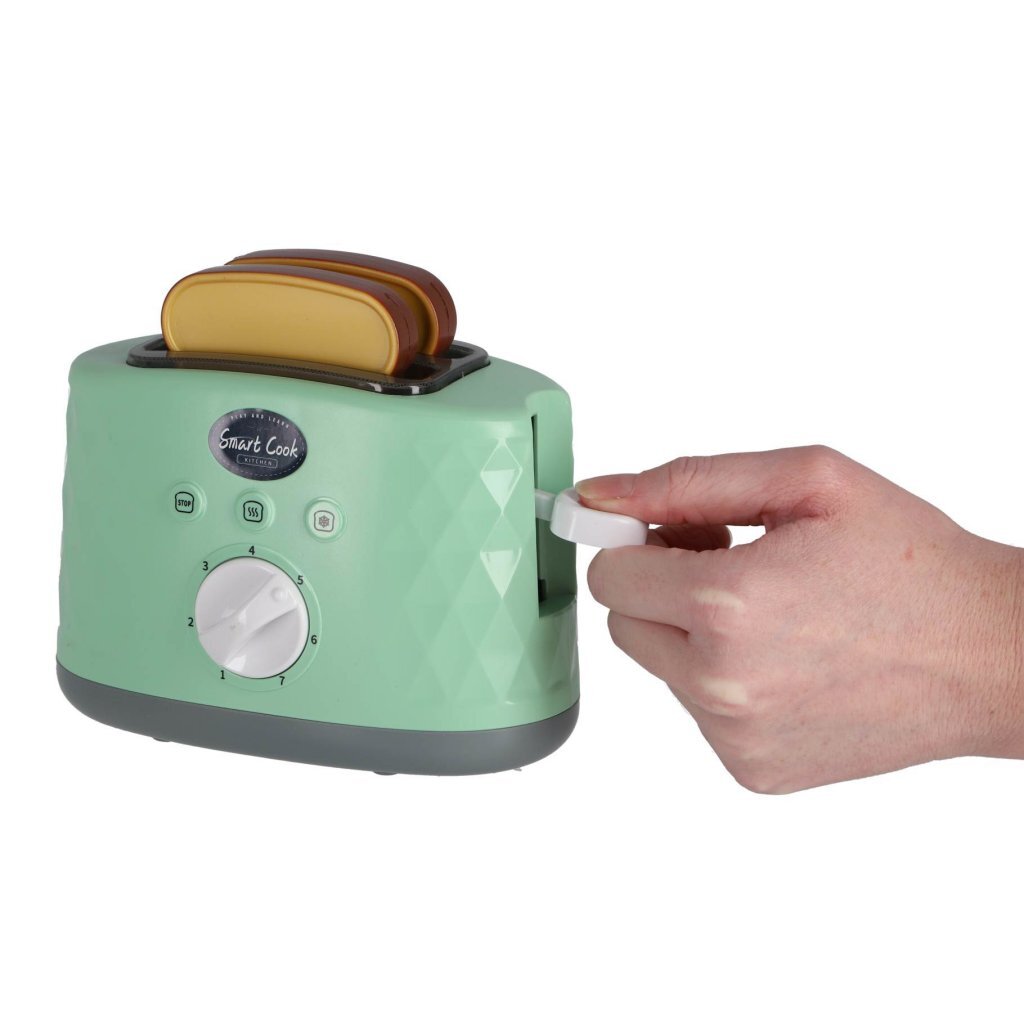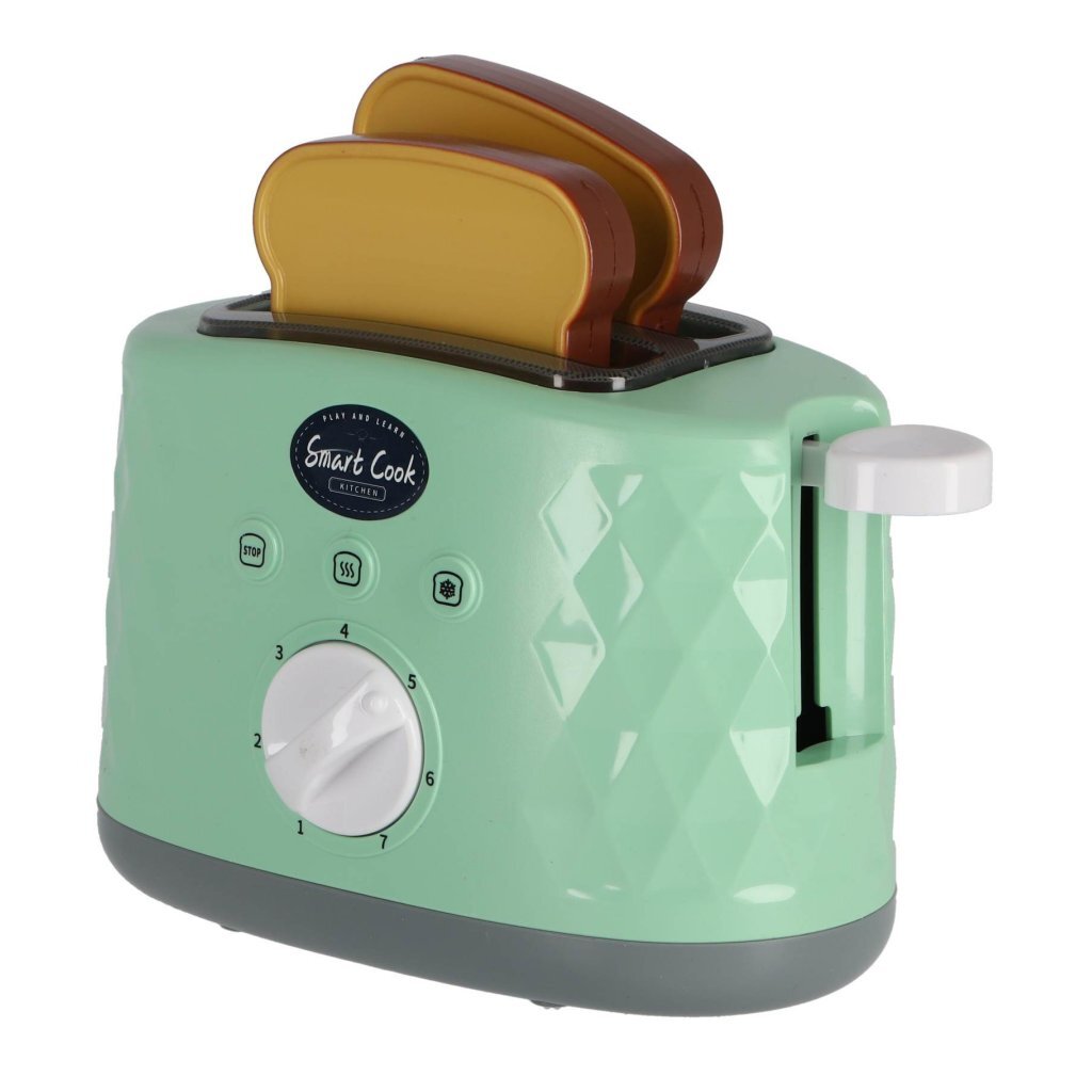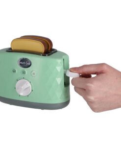 Speelgoed broodrooster voor kinderen vanaf 3 jaar. Plaats brood in de gleuf en zet de timer. Als de timer afloopt zal het brood eruit springen. Stevig kunststof. Kleur: mint.