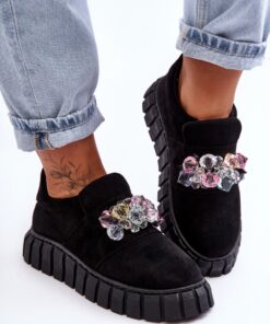 Deze unieke sportschoenen zullen zeker je hart stelen! Ze zijn gemaakt van zacht eco-suède. Het model is slip-on en heeft bovendien een versiering in de vorm van kristallen aan de voorkant. De schoenen staan op een stevig plateau met een antislipzool. De zachte binnenzool van een combinatie van schuim en textiel zorgt voor een comfortabel gebruik van de schoen.