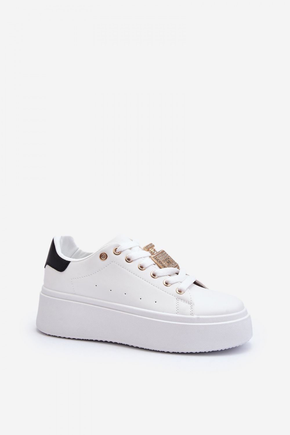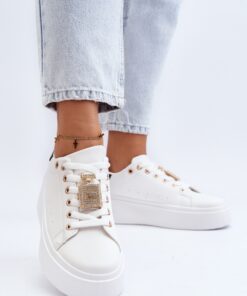 Dames sportschoenen zijn gemaakt van eco leer. Geplaatst op een plateau. Dit model heeft een klassieke vetersluiting. Ze zijn perfect als dagelijkse schoenen, voor naar het werk of naar school. De schuimrubberen binnenzool zorgt voor je comfort. Op de veters een versiering in de vorm van een parfum. Dit model mag niet ontbreken in je garderobe!