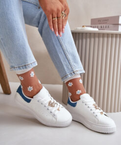 Lage dames sneakers gemaakt van eco-leer zijn een combinatie van stijl en comfort. Geplaatst op een platform, deze sneakers zijn voorzien van schattige knopen op de veters, die ze een unieke uitstraling geven. Perfect schoeisel voor dagelijkse outfits, die een trendy uitstraling combineren met draagcomfort.