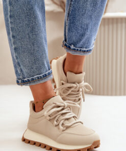 Dames sneakers zijn gemaakt van ecologisch leer. Geplaatst op een platform met uitstulpingen. Het schuimrubberen voetbed zorgt voor comfort bij elke stap. Dikke veters zorgen voor een goede pasvorm van de schoen bij de breedte van de voet. Dit model zal veel styling perfect aanvullen door een sportieve stijl toe te voegen!