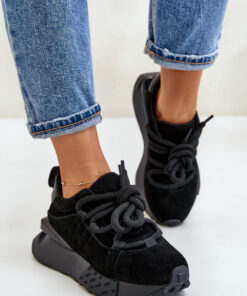 Damessneakers gemaakt van natuurlijk suède. Geplaatst op een platform. Dit model onderscheidt zich door dikke veters. Het platform zorgt voor extra comfort en lichtheid tijdens het lopen, terwijl het ook enkele centimeters in hoogte toevoegt. Ideaal voor dagelijkse outfits en meer casual outfits. Kies ze om je unieke stijl te benadrukken en de hele dag comfortabel te genieten.
