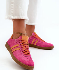 Modne damskie sneakersy, wykonane z naturalnego zamszu, są idealnym połączeniem stylu i komfortu. Niskie, sznurowane buty doskonale pasują zarówno do casualowych, jak i bardziej eleganckich stylizacji. Miękka wkładka zapewnia komfort noszenia przez cały dzień. Idealne na spacery po mieście, zakupy czy spotkania ze znajomymi, stanowią modne i praktyczne dodatki do każdej garderoby.