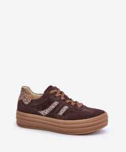 Dames sneakers van natuurlijk suède zijn een stijlvolle en veelzijdige keuze voor elke dag. Ze staan op een comfortabel plateau, waardoor ze een paar centimeter hoger worden en stabiliteit bieden. De afgeronde teen geeft ze een klassieke uitstraling die het goed doet bij zowel casual als gekledere combinaties. Deze trendy sneakers passen perfect bij jeans, jurken of rokken en zijn een combinatie van comfort en actuele trends.