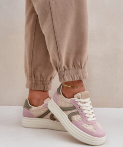 Dames sneakers op een platform zijn een modieuze en comfortabele keuze voor elke dag. De afgeronde neuzen geven ze een klassieke uitstraling. Het bovenwerk is versierd met vlechtwerk. De schuimrubberen inlegzool, bedekt met zacht materiaal, garandeert comfortabel dragen gedurende vele uren. Ideaal voor casual stijlen, combineren ze stijl en functionaliteit.