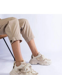 Beige sports sneakers for women with a massive sole Lien Hurtado are the perfect shoes for active women! Their universal color means they will match many outfits. Comfortable and lightweight, they will provide you with everyday comfort, and thanks to their solid construction, they will serve you for many seasons. The lace-up closure ensures a perfect fit to the foot. The outer material is made of ecological leather, and the rubber sole provides good grip on various surfaces. These sneakers are a combination of style, comfort, and durability!