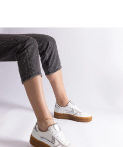 Witte sneakers met rubberen zool Quica Hurtado zijn de absolute hit van het seizoen! Het klassieke ontwerp in combinatie met trendy details zorgen ervoor dat je er geweldig uitziet in elke outfit. Comfortabele en lichte sneakers die perfect zijn voor dagelijks gebruik, zowel met jeans als met elegante rokken. Met vetersluiting, gemaakt van hoogwaardig kunstleer. De bruine zool geeft ze karakter. De perfecte combinatie van stijl en comfort!