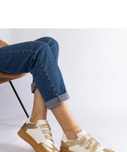 Stijlvolle gouden sneakers Mena zijn een ideale keuze voor mensen die comfort en stijl waarderen. Gemaakt van hoogwaardig ecologisch leer en sluitend met praktische klittenband, garanderen ze comfort en duurzaamheid. Lage sneakers zijn perfect voor dagelijks gebruik, passend bij zowel casual als meer elegante outfits. De zool, gemaakt van bruine rubber, zorgt voor stabiliteit en zekerheid bij elke stap. Dit is een uitstekende keuze voor mensen die comfort en trendy design waarderen.
