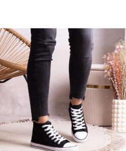 Zwarte hoge sneakers met kant van Bonifakima zijn een perfect doordacht model schoeisel dat originaliteit aan je outfit zal toevoegen. Hun hoge schacht zorgt voor stabiliteit en ondersteuning voor de voet, waardoor ze een ideale keuze zijn voor dagelijks gebruik. Gemaakt van stof, hebben de sneakers een rubberen zool in bruin en een vetersluiting. Ze zullen zowel op straat als op een feestje perfect passen, waardoor je je zelfverzekerd en modieus voelt. Ideaal voor het herfst/winterseizoen.