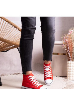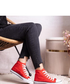 Rode hoge sneakers met kant van Bonifakima zijn een uitstekende keuze voor vrouwen die waarde hechten aan een modieuze en elegante uitstraling. Hun ronde neus zorgt voor comfort, terwijl de hoge schacht hen een chique en klassieke uitstraling geeft. De sneakers zijn gemaakt van hoogwaardig rubber, wat stabiliteit en draagcomfort garandeert. Het vetersluiting maakt een perfecte pasvorm mogelijk, en het kant geeft ze een bijzondere charme. Deze sneakers zijn een absolute must-have in de kast van elke trendy vrouw! Ideaal voor het herfst-winterseizoen.