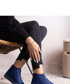 Hoge Rafife jeans sneakers zijn absoluut een hit van dit seizoen! Deze modieuze schoenen zijn perfect voor vrouwen die graag de nieuwste trends volgen. Hun hoge schacht en ronde neus voegen niet alleen stijl toe, maar zorgen ook voor draagcomfort. Bovendien zorgt de rubberen zool voor stabiliteit en comfort bij elke stap. Deze vetersneakers zijn een uitstekende keuze voor elke fashionista die bij de tijd wil blijven met de mode! Verkrijgbaar in het blauw, passen perfect bij veel outfits. Ideaal voor de lente en de zomer!