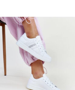 De witte sneakers Berdine gemaakt van ecologisch leer zijn elegant en revolutionair, en zijn een essentieel onderdeel van elke kast. Hun lage bovenkant en ronde neus maken ze tegelijkertijd comfortabel en stijlvol. De elastische rubberen zool zorgt voor comfortabel dragen gedurende de hele dag. Bovendien maakt de vetersluiting een perfecte pasvorm mogelijk. Dit zijn de ideale schoenen voor mensen die zowel comfort als een modieuze uitstraling waarderen. Bovenmateriaal: Ecologisch leer. Voering: Geen. Zoolmateriaal: Rubber. Kleur zool: Wit. Sluiting: Veters. Collectie: Lente/Zomer.