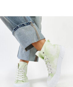 De heldergroene hoge sneakers Raissa zijn innovatieve schoenen die verrassen met hun unieke ontwerp. Hun lichtgroene kleur maakt ze een zeer modieuze toevoeging, die zich onderscheidt van andere sneakers. Gemaakt van hoogwaardige materialen, waaronder rubber, garanderen ze comfortabel dragen en duurzaamheid. De afgeronde neus geeft ze een origineel karakter, en het model met veters zorgt voor een perfecte pasvorm. Deze hoge sneakers zijn een essentieel item in de garderobe voor iedereen die een moderne stijl en comfort waardeert.