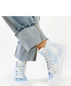 Blauwe hoge stoffen sneakers Raissa Adidasi Raissa zijn ideaal schoeisel voor degenen die een progressieve stijl en comfort waarderen. Gemaakt van hoogwaardig materiaal in de kleur blauw, ze hebben een rubberen zool die een uitstekende grip biedt. De afgeronde neus en afwerking met veters geven ze een moderne uitstraling. Deze populaire sneakers zijn een echte hit in elke kast! Hoge sneakers bieden ondersteuning en stabiliteit tijdens het dragen. Ideaal voor zowel dagelijks gebruik als avondjes uit.