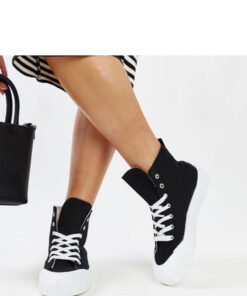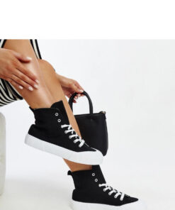 Zwarte hoge sneakers van Vinka zijn de ideale keuze voor degenen die een stijlvolle en moderne uitstraling waarderen. Deze sportschoenen hebben veters, wat ze karakter geeft en zorgt voor een perfecte pasvorm. De hoge schacht maakt ze niet alleen comfortabel, maar ook zeer trendy. De ronde neus geeft ze een klassieke uitstraling, terwijl de rubberen zool stabiliteit en comfort biedt tijdens het dragen. Dit is een echte hit onder sportschoenen! Buitenkant: Stof, Isolatie: Nee, Materiaal zool: Rubber, Kleurtje zool: Wit, Sluiting: Veter, Collectie: Zomer/Lente.