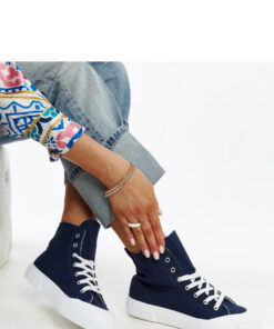 De donkerblauwe hoge sneakers Vinka zijn een uitstekende keuze voor iedereen die waarde hecht aan modieuze en stijlvolle schoenen. Gemaakt van hoogwaardig rubber, bieden ze de hele dag door comfort. De ronde neus geeft de schoenen een zeer moderne uitstraling, terwijl de vetersluiting zorgt voor een perfecte pasvorm. Deze trendy sneakers zijn een geweldig aanvulling op elke casual stijl. Buitenkant: Stof. Voering: Geen. Materiaal van de zool: Rubber. Kleur van de zool: Wit. Sluiting: Vetersluiting. Collectie: Zomer/Lente.