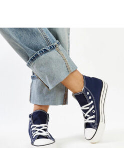 Donkerblauwe hoge sneakers op een dikke zool Bagy Cau?i zijn modieuze en goedkope sneakers voor de jonge generatie! Deze hoge donkerblauwe Bagy sneakers zijn de perfecte keuze! Ze hebben een ronde neus, een dikke rubberen zool en zijn veterschoenen. Bovendien is hun ontwerp erg chic, waardoor ze een perfecte aanvulling zijn op je urban stijl.