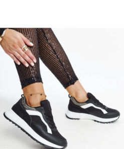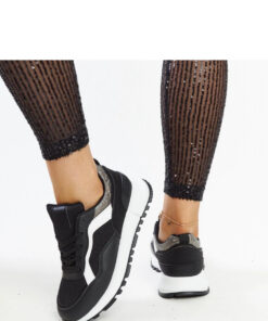 Productbeschrijving: De zwarte platform sneakers met glitter van Evelia zijn de perfecte keuze voor alle liefhebbers van modieuze en comfortabele schoenen. De sneakers hebben geen voering, waardoor ze ideaal zijn voor warmere dagen. Ze zijn gemaakt van hoogwaardige materialen en hebben een zwarte rubberen zool die stabiliteit en comfort biedt tijdens het lopen. De vetersluiting zorgt ervoor dat de schoenen perfect passen om de voet. De sneakers uit de collectie Lente/Zomer zijn een geweldige aanvulling op casual, stedelijke outfits.