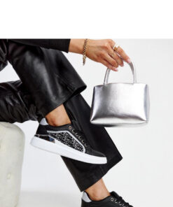 Zwarte sneakers op een platform met glitter zijn het ideale schoeisel voor mensen die graag opvallen in de menigte. Deze stijlvolle schoenen kenmerken zich door een uniek glitterpatroon dat ze elegantie en stijl geeft. Het comfortabele platform zorgt voor draagcomfort, terwijl de witte rubberen zool zorgt voor contrast en de schoenen nog spectaculairder maakt. De vetersluiting zorgt voor een perfecte pasvorm. Deze sneakers zijn een uitstekende keuze voor de zomer, wanneer je wat glans en stijl aan je dagelijkse garderobe wilt toevoegen.