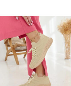 De beige stoffen sneakers Ornella zijn ideaal schoeisel voor de zomer. Gemaakt van hoogwaardige stof, zorgen ze voor comfortabel dragen en passen perfect om de voet. Ze hebben geen voering, waardoor ze ideaal zijn voor warme dagen. De beige rubberen zool zorgt voor goede grip en demping. Deze sneakers uit de zomercollectie zullen een perfecte aanvulling zijn op de zomergarderobe en er geweldig uitzien met zowel jeans als een jurk.